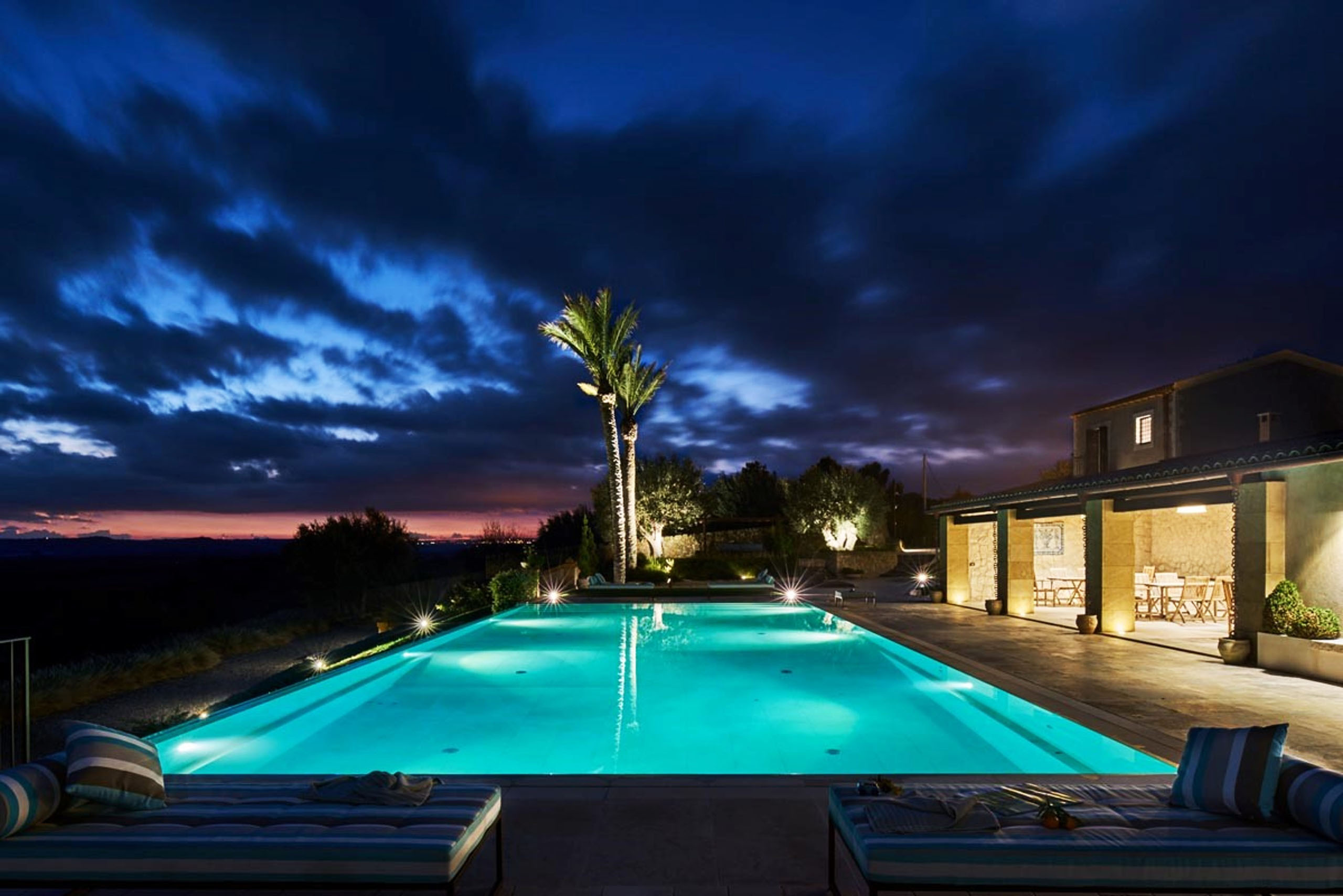 Sul lato sud-est della proprietà, in corrispondenza della tettoia ospitante la zona relax e la cucina rustica è stata realizzata la piscina, interrata su tre lati a quota della pavimentazione del cortile adiacente, e con il lato sud scoperto per ospitare il bordo a sfioro; sotto questo è stato realizzato un terrazzamento sottostante con la creazione di un terrapieno inclinato a scarpa.