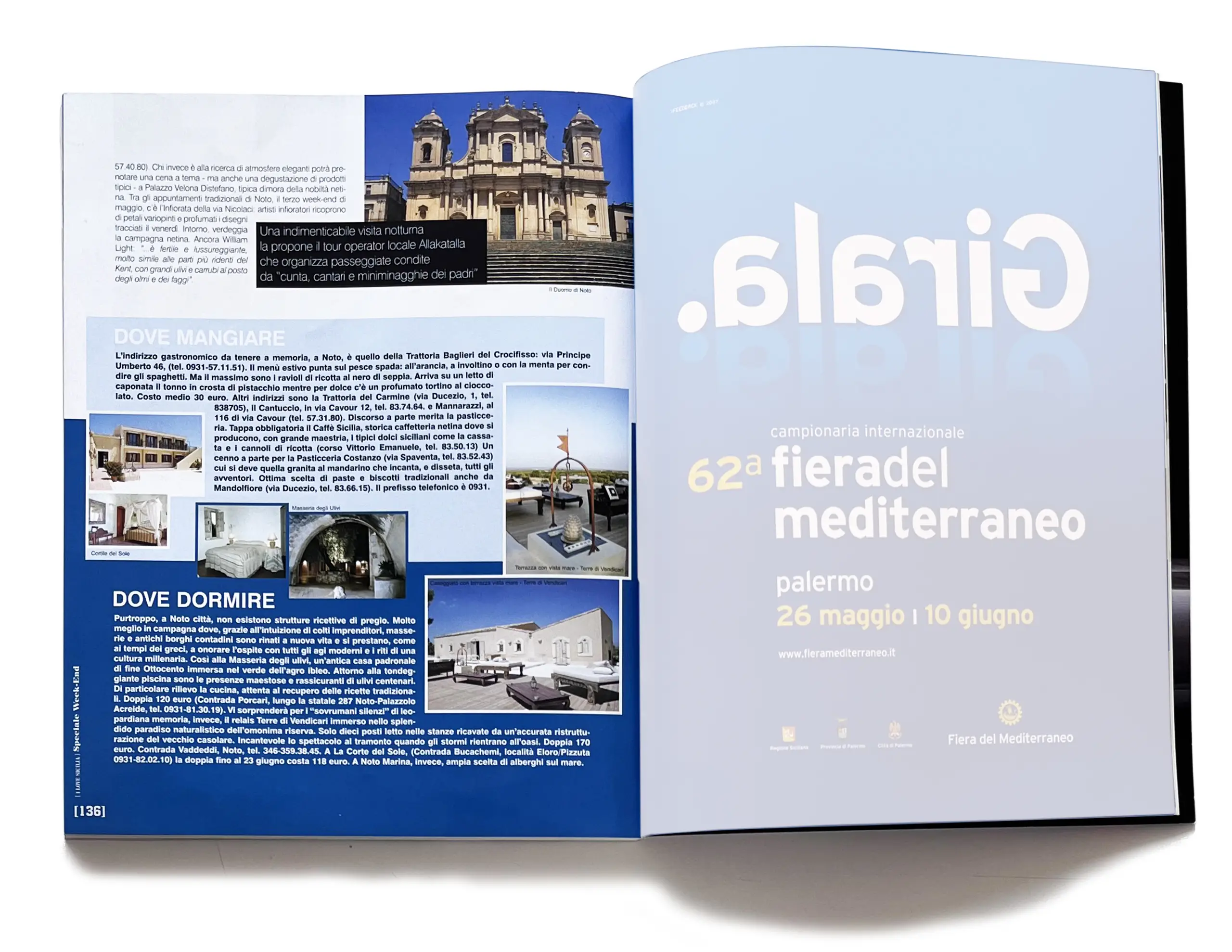 Non il solo volto, Gilda Bojardi, in un numero che narra, fra l’altro, le esperienze e gli orizzonti della project manager Aloisa Moncada per riportare al fasto reale delle botteghe e del tessuto sociale il centro storico di Palermo; di Laurent de la Gatinais, presidente di Assovini; delle scrittrici Sofia Pirandello e Giusy Sciacca.